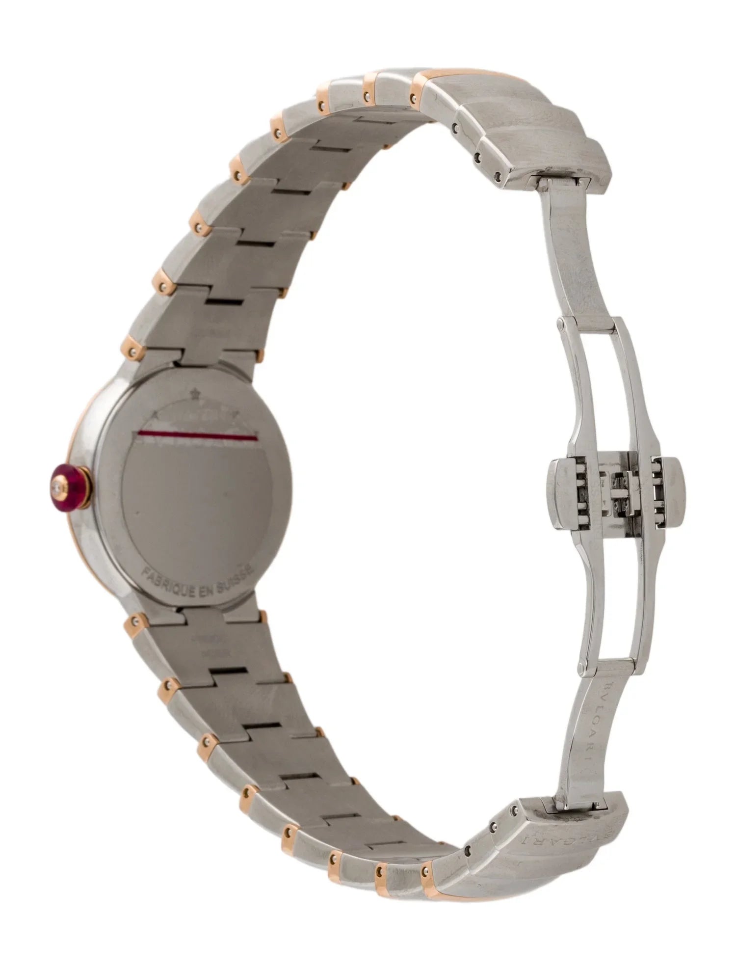 Bvlgari Lucea en oro rosa de 18k y acero inoxidable con esfera de diamantes color burdeos. 28 mm