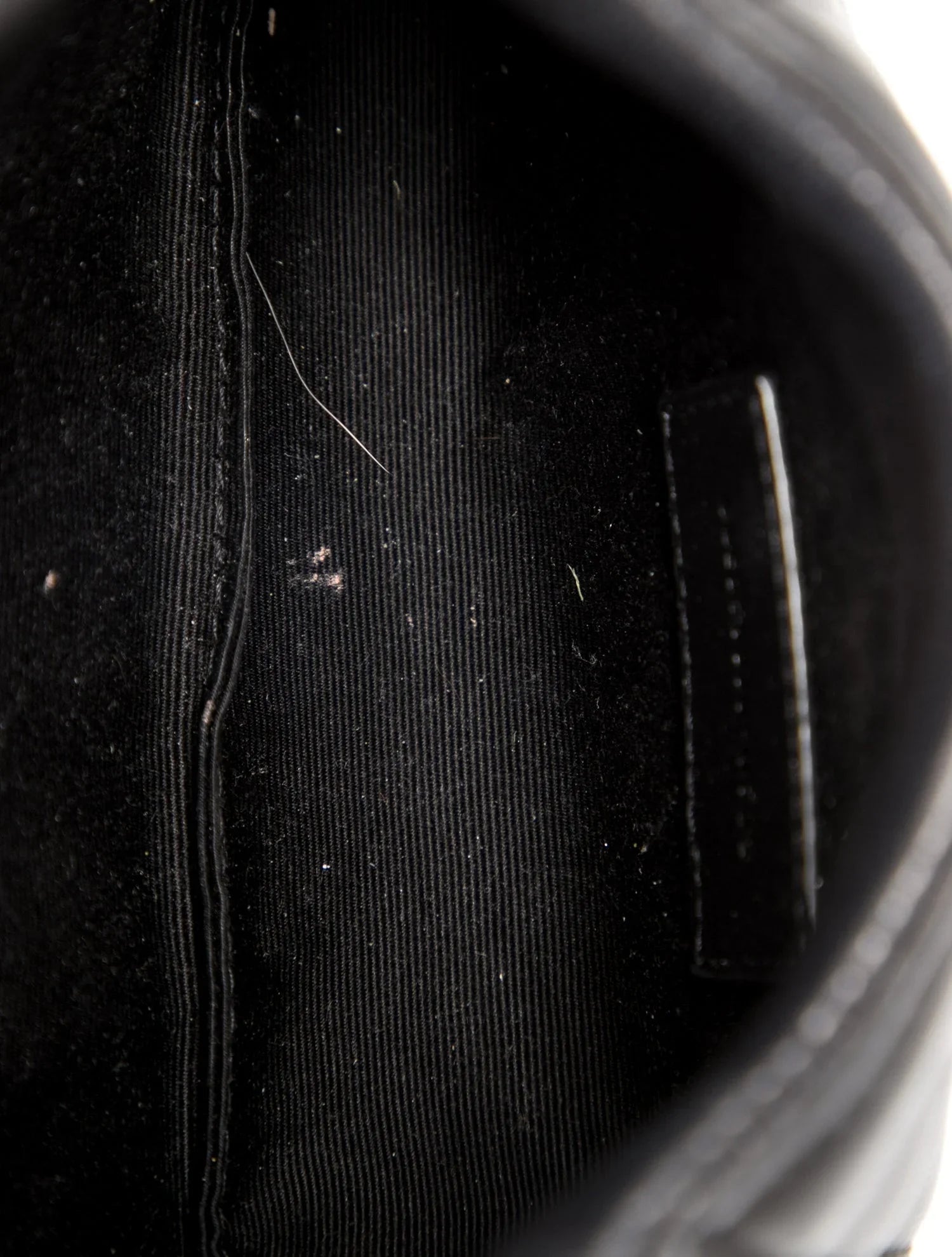 Minor scratches at hardware and exterior; minor residue at interior.